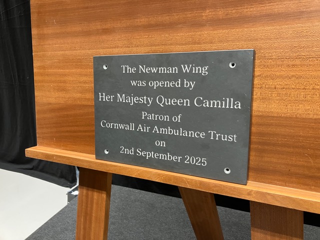 Founding Pilot Geoff Newman has been honoured by the Cornwall Air Ambulance Trust. They have named their new Operations Building ‘THE NEWMAN WING’. A commemorative plaque was unveiled by the unit’s patron, Queen Camilla, on the 2nd of September at a ceremony held in the aircraft hangar. The Queen also used the opportunity to name the new helicopter ‘The Duke of Cornwall’. The event was attended by members of the Trust, local dignitaries and past and present crew members and their families. Geoff’s family are pictured standing in front of the new Air Ambulance Helicopter. There are now 21 Air Ambulances run by charities covering the whole of UK and nearly all followed the Cornwall model. Many owe their existance to Geoff’s foundational work in Cornwall.
